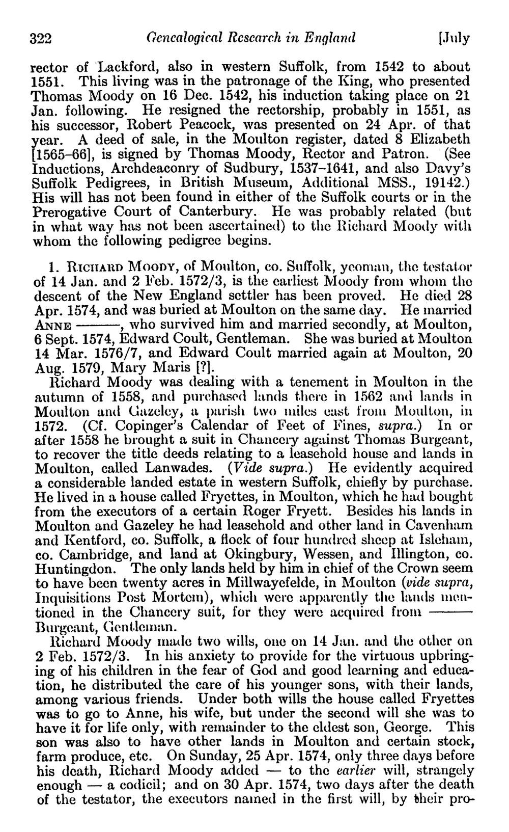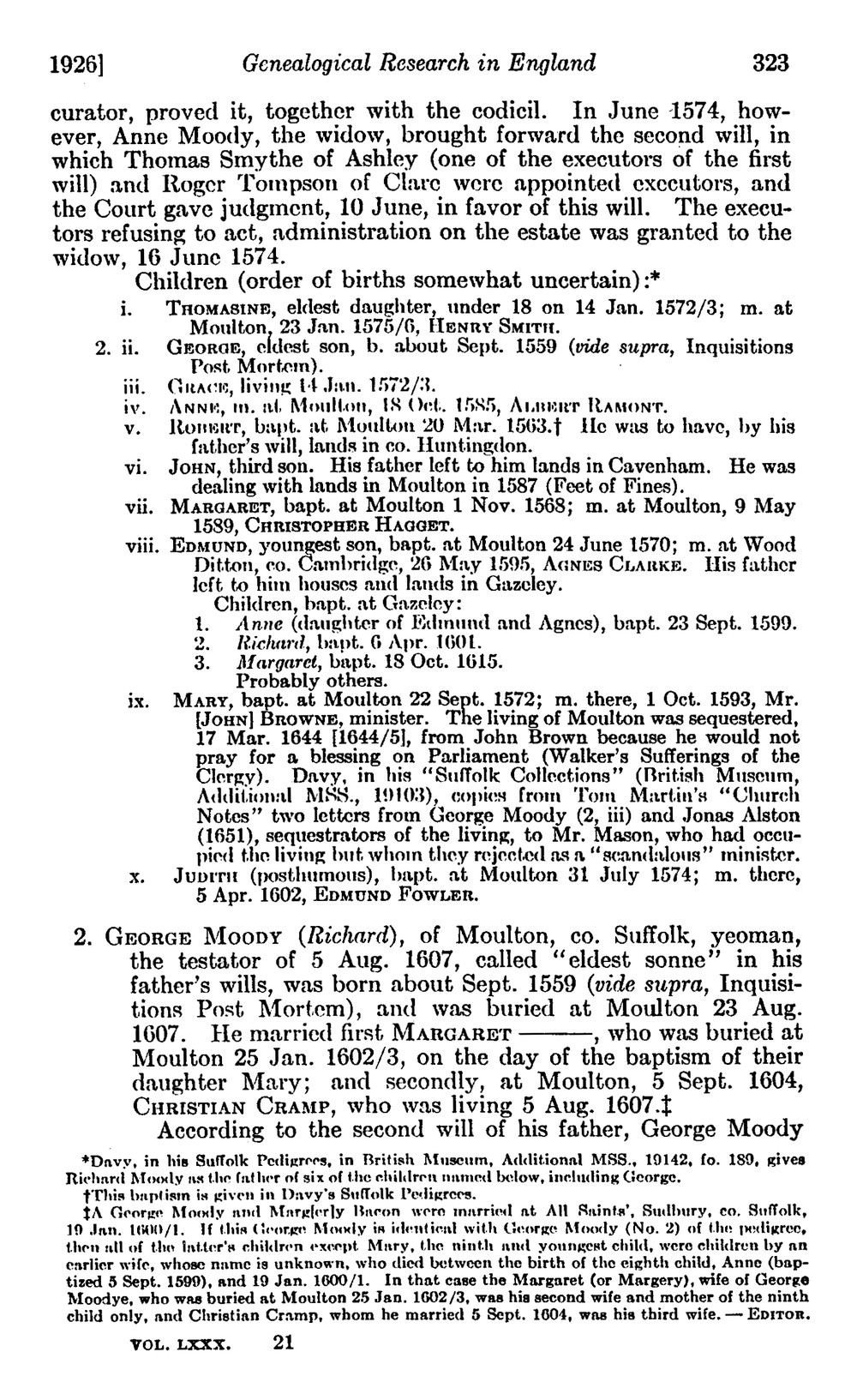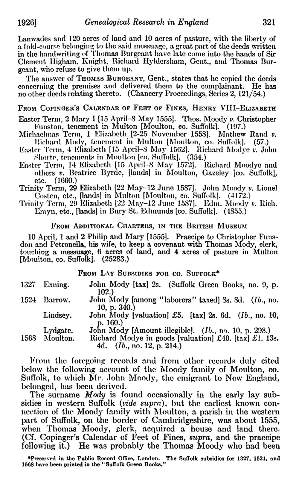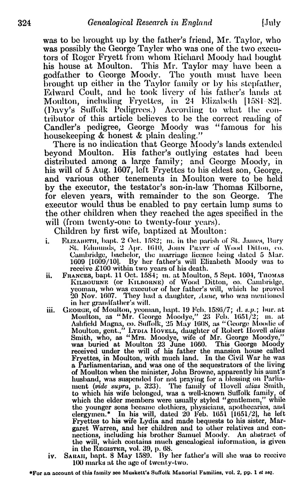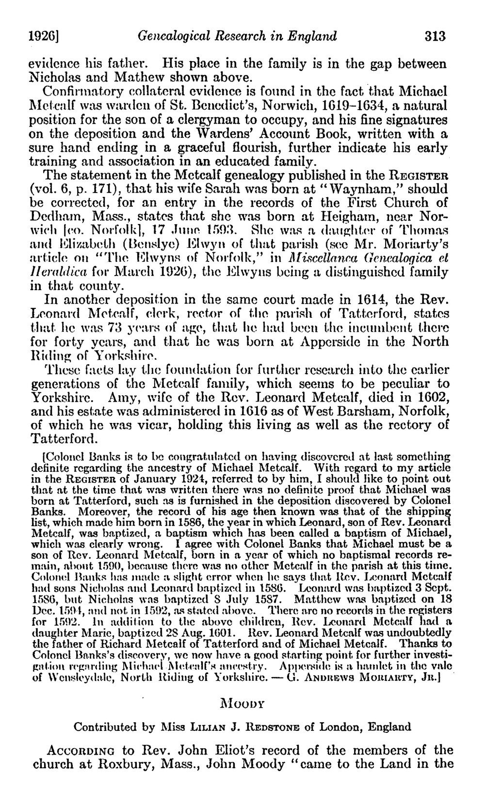 Redstone, Lilian J. "Genealogical Research in England: Moody."