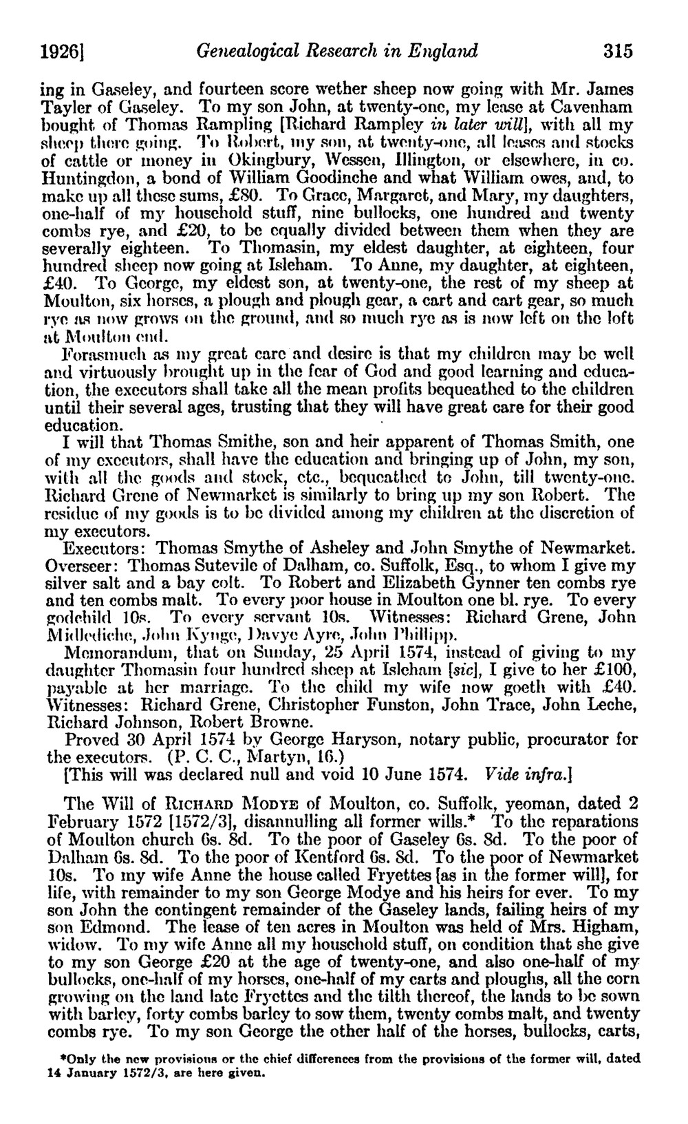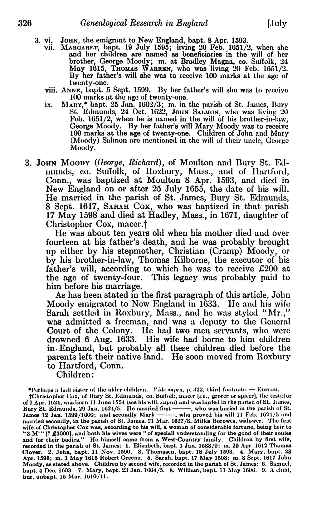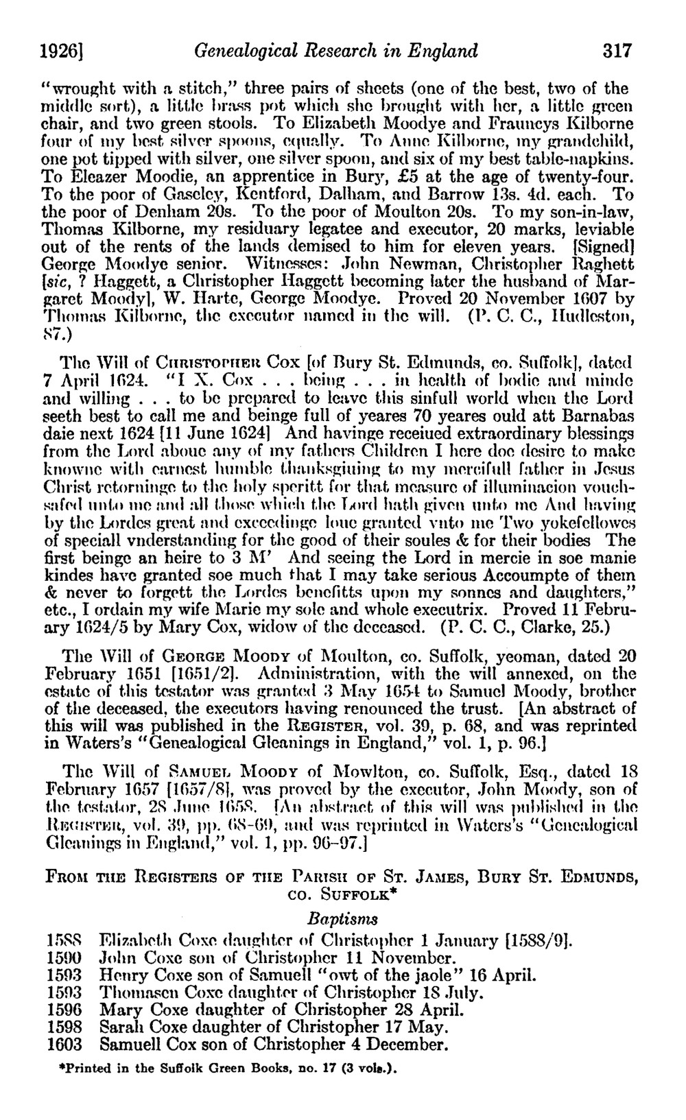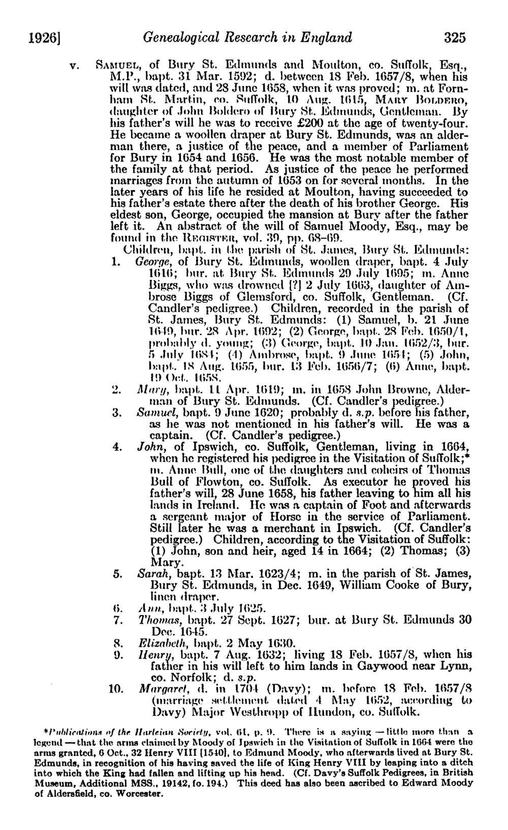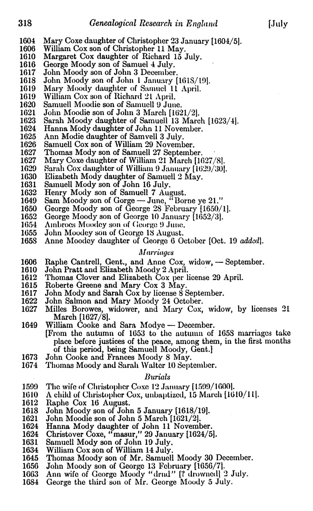 Redstone, Lilian J. "Genealogical Research in England: Moody."