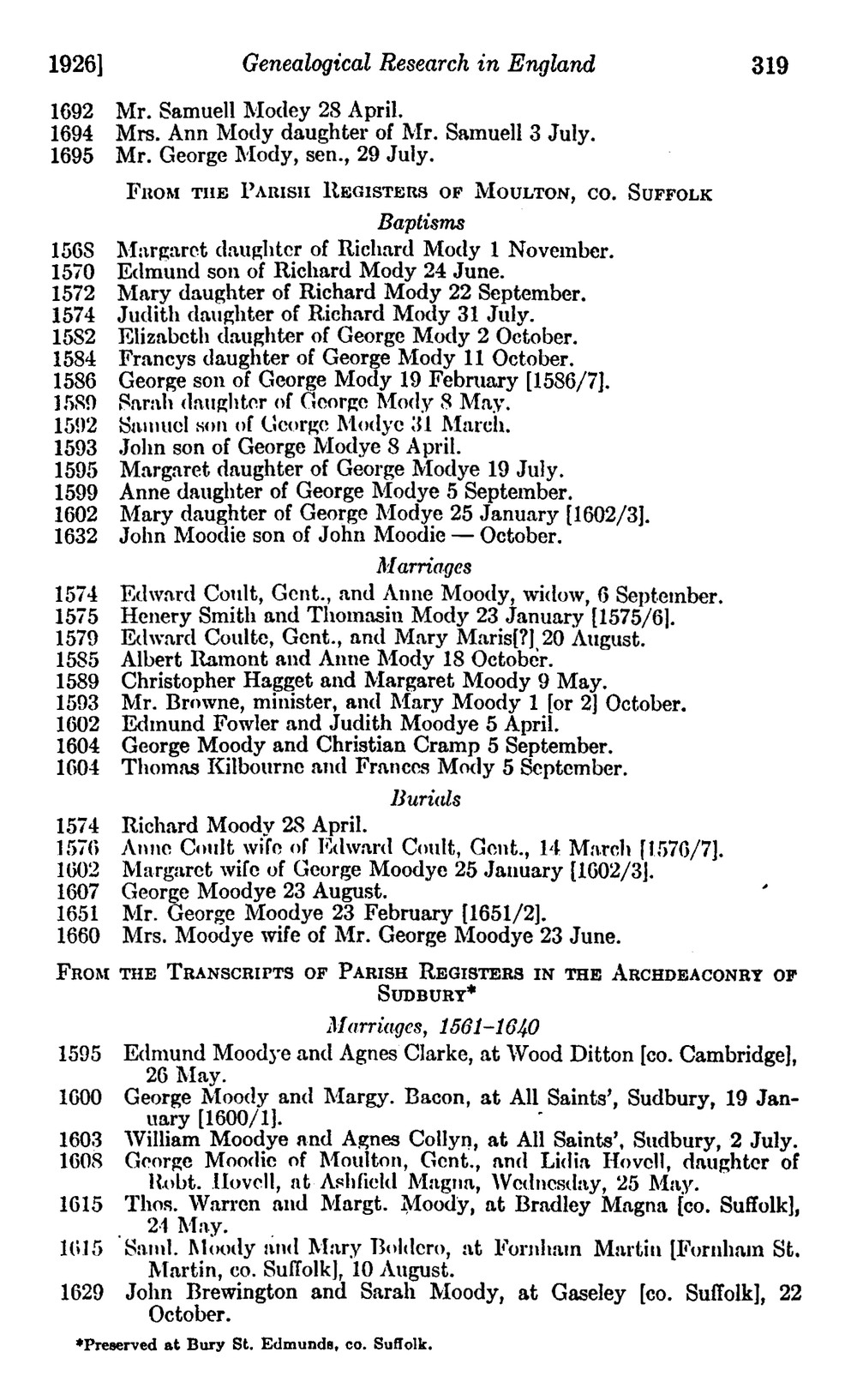 Redstone, Lilian J, "Genealogical Research in England: Moody."