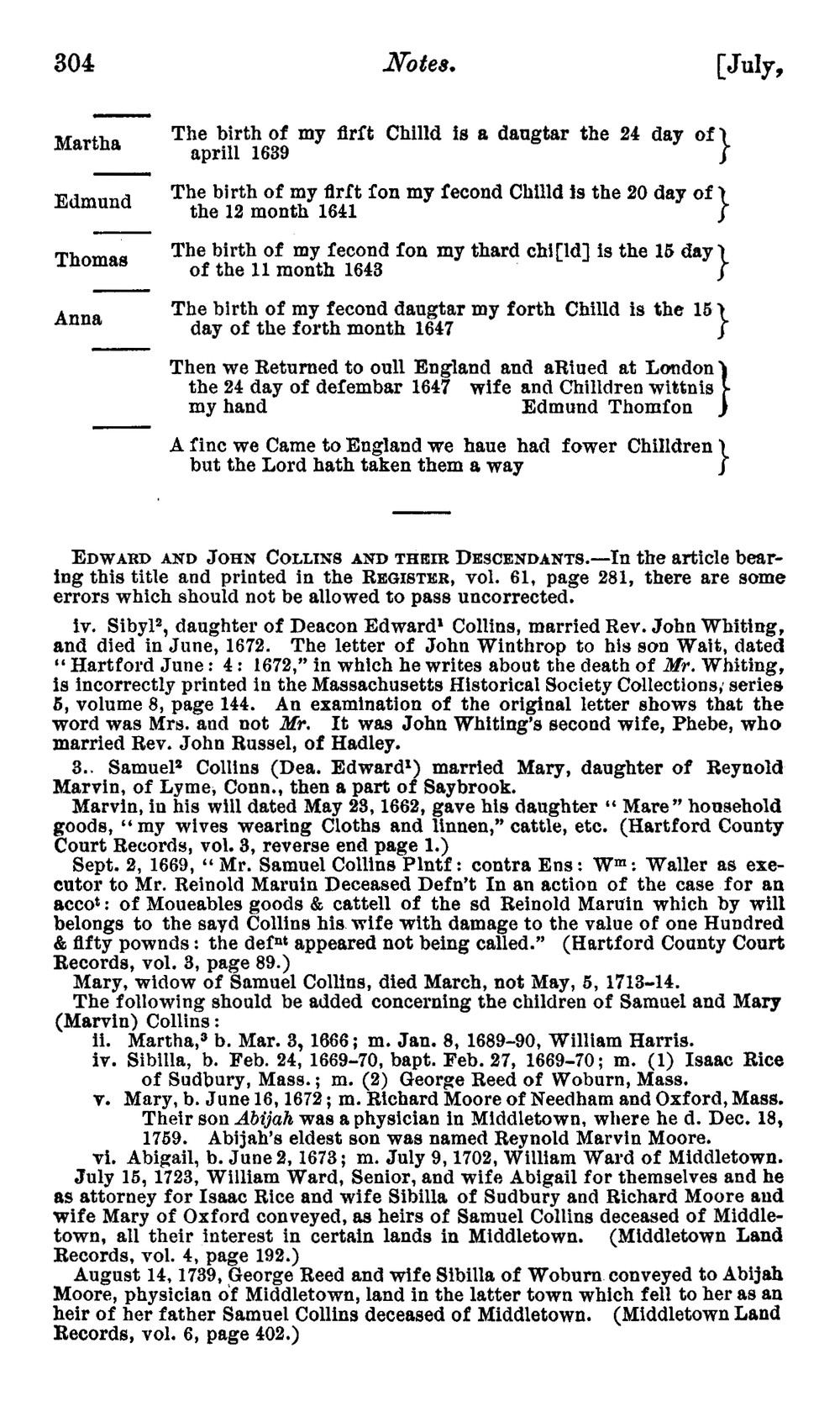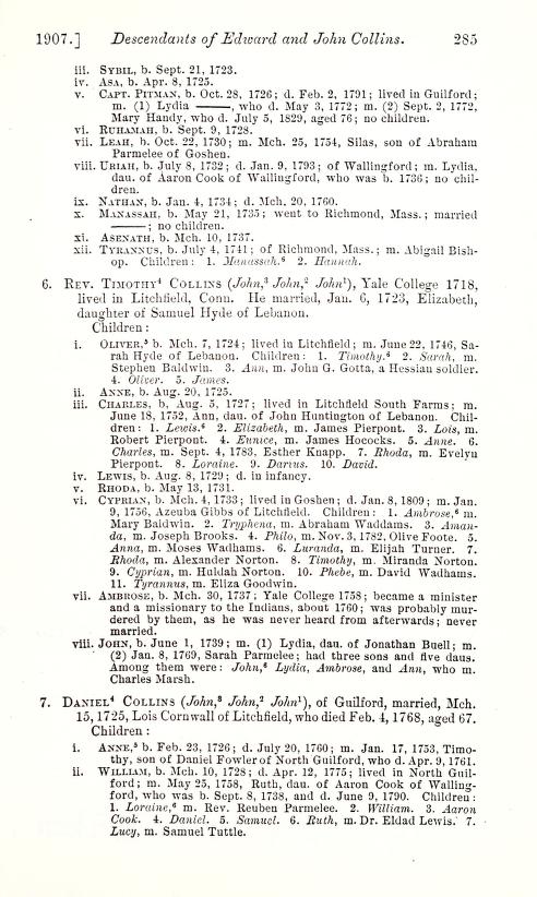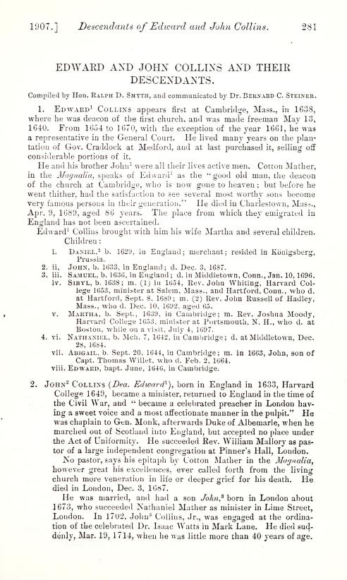 Smyth, Ralph D, compiler. "Edward and John Collins and Their Descendants."